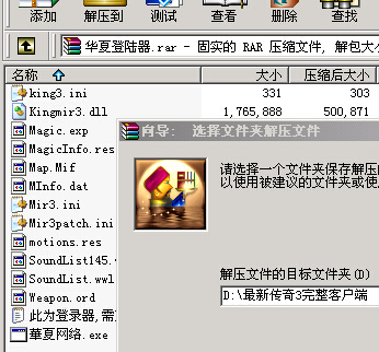 如果您还没有下载客户端或登录器,请先点击下面的链接下载(已经下载的玩家请忽略此步骤): http://www.hxcq3.com/xinshourumen/253.html 为了完整的体验游戏,建议下载完整客户端,下载完客户端后需安装好华夏版登录器。 建议使用下载页面的“极速下载点”进行下载,以获得最快速度(进入极速下载页面后点击下载按钮,然后点击“普通下载”)。 迅雷会员建议使用迅雷下载点。 一、安装客户端(适用于下载完整客户端的玩家) 当您下载完客户端之后,双击客户端进入安全界面,如下图: 某些旧版Winrar解压缩软件解不了7z格式的,请升级到较新版解压 安装位置在D盘.E.f任意盘件夹下。另外请保证目标盘有5G空间,否则安装会失败。 安装客户端和登陆器完毕后,运行游戏目录中的 华夏传奇三.exe 即可进行游戏,第一次运行会提示创建桌面快捷方式,可自行选择。 华夏传奇三.exe 长这个样子的,请看: 备注:如果您下载下来的不是EXE文件,而是一个压缩包(ZIP、7Z等格式),可直接解压缩后运行华夏传奇三.exe畅玩。 二、登录器下载安装(覆盖到传奇3根目录) 首先,强烈建议您下载完整客户端,因为如果只下载登录器的话,会遇到很多问题,比如怪物、地图、装备等显示不正确。 登录器下载后,需要先进行解压,然后覆盖到传奇3根目录,然后运行 华夏传奇三.exe 即可进行游戏。 虽然很简单,可是很多玩家都会在这一步出错,原因很简单,就是没有正确覆盖到根目录。结果就是进入游戏黑屏。 原谅我匮乏的语言无法完美诠释出根目录的概念,所以大家还是看下面的图片教程吧。 1、解压华夏传奇3登录器,选择解压到目标文件夹。 2、例如解压到目标文件夹:华夏传奇3客户端,也可将解压出来的文件复制到:华夏传奇3客户端(CTRL+C) 3、也可找到您已有的其他传奇3根目录,将解压出的登陆器文件复制粘贴进去。 这一步最容易出错,何谓根目录,华夏传奇三根目录是:华夏传奇3完整客户端。 注:不支持盛大的传奇3客户端。 4、运行 华夏传奇三.exe 希望上面的文字对您有所帮助,如果仍有问题,请联系客服。